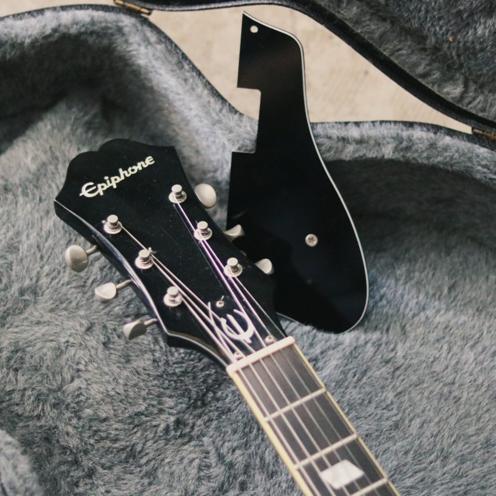 少し頼りない音が魅力でもあるカジノですが、この個体も頼りない良い雰囲気のサウンドです。重量は約2800gで軽量です。生鳴りは普通のエレキギターより大きいのでアンプを通さず家弾きしやすいのも魅力です。