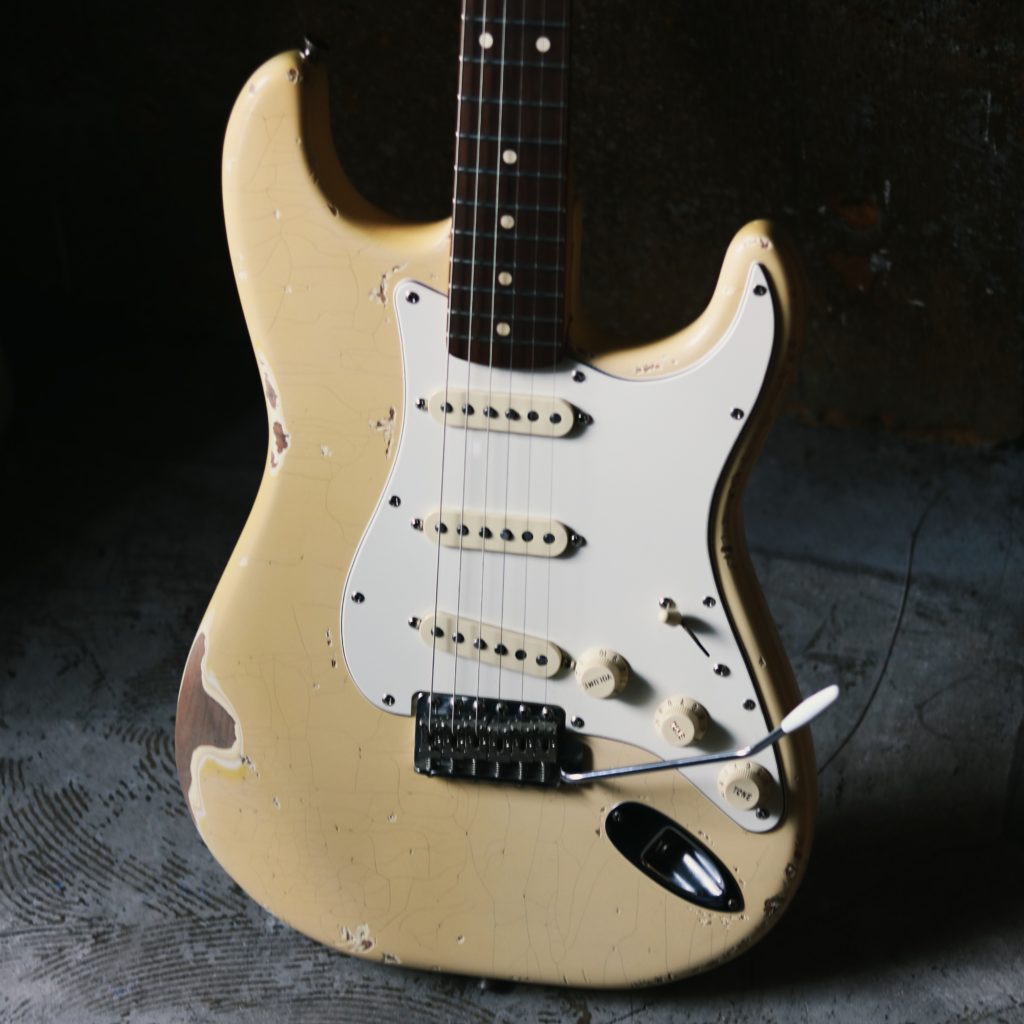 サウンドの参考にしたのは1964年製のビンテージストラトキャスターで、そのギターに近いサウンド、弾き心地になるように試行錯誤しセッティングしております。サウンドはかなり近づいてますし軽く弾いてしっかり鳴る素晴らしい仕上がりになりました。ただ、ネックの質感やアンプを通さずに弾いた際の雰囲気はビンテージギターには劣ります。ですが、価格を考えるとコスパは最強といっても過言でないストラトキャスターです。