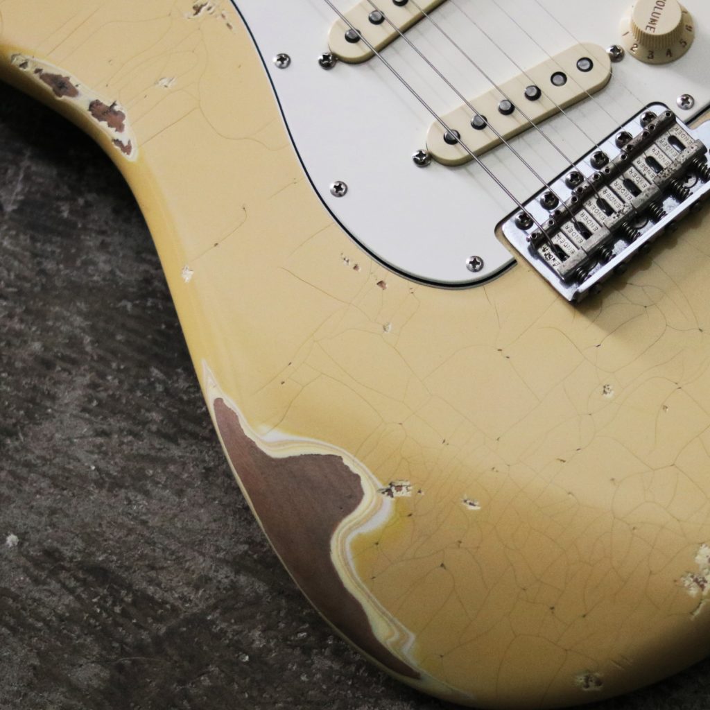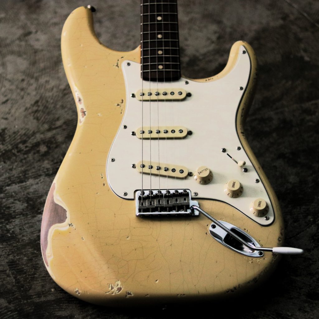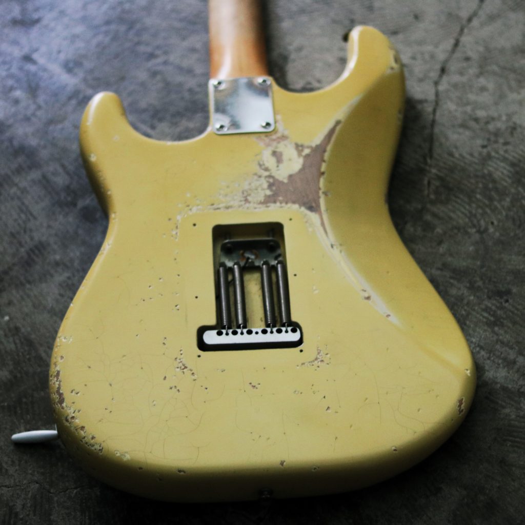 軽量なフェンダーUSA/Usedアメリカンビンテージシリーズのアルダーボディーを外注して非常にナチュラルにレリック加工しております。傷や塗装の剥がれ、クラックも入り素晴らしい仕上がりです。ピックアップは色々試して相性抜群だったフェンダーUSAカスタムショップのFat50(新品)を搭載しております。ちなみにギター全体の重量は約3680gです。